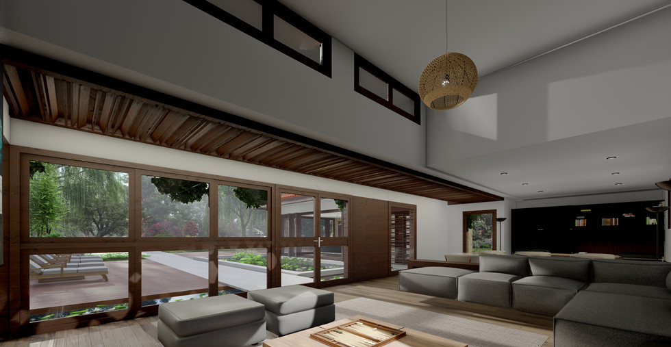 El modelo ATR-304 es un diseño moderno de inspiración wrightiana que se desarrolla entorno a un jardín e incluye en una sola planta, dos porches, un hall, un salón-comedor con una doble altura y chimenea, una cocina independiente, despensa, lavandería, sala de juegos, tres baños y cuatro dormitorios, uno de ellos con vestido y baño incorporado. La superficie total del diseño es de 303,55 m2.